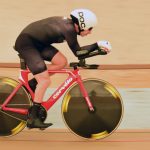 It said 72, but the actual temperature was 62, on my bike computer. You’re not allowed to look at the bike computer but you can put it on behind you, on the seat. When I was warming up I was looking at it, and I said, ‘I think it’s too cool.’ Every ten degrees is worth five watts, and every five watts is worth a lap and a half. I was ten degrees cooler, so that was a lap and a half that we lost. The wheel was probably another lap. A kilometer is four laps, so we’re looking at half a kilometer just by those two things alone. Then we figured out that there’s another way I can hold my head where I actually look straight down at the track, which is very difficult to do.